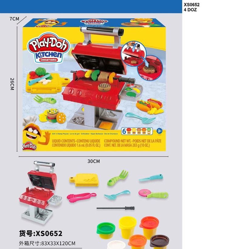 با باربیکیو کوچیکتون مهمونی راه بندازید! همه چیز برای برگزاری یه مهمونی فوقالعاده در کنار دوستانتون مهیاست. با لوازم و خمیرهای داخل این ست میتونید کلی غذاهای خوشمزه مثل برگر، هاتداگ، مرغ و کباب درست کنید و با گذاشتن خمیر روی قالبها، فشار دادن در باربیکیو؛ با استمپی که توی در اون وجود داره روی غذاها خطهای گریلشدگی ایجاد میشه، ولی نگران نباشید بعد از علامتزدن روی خوراکیها هم باز میتونید از خمیر استفاده کنید. در کنار این غذاهای خوشمزه، کاهو، ترشی، آناناس، قارچ و خوردنیهای دیگه هم بسازید تا سفرهتون قشنگ و رنگیتر بشه.