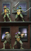 ۴ اکشن فیگور از لاکپشت های نینجا, ۴ تکه پیتزا, ۸ عدد دست اضافه, دو عدد خنجر برای دست ها, دو عدد نانچیکو, شمشیر کاتانای ژاپنی, یک میله آهنی