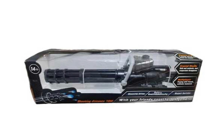 سپس بعد از گذشت 3 ساعت ساچمه ها را داخل محفظه پلاستیکی طلقی (خشاب) بریزید و ماشه را فشار دهید تا ساچمه ها به صورت رگباری تا فاصله 18 متر پرتاب شوند. این اسباب بازی مناسب نوجوانان +14 سال و جوانان علاقمند به بازی های ویدیویی است. بعد از قرار دادن باطری در محفظه نگهدارنده آن، فن تفنگ شروع به فعالیت می کند.