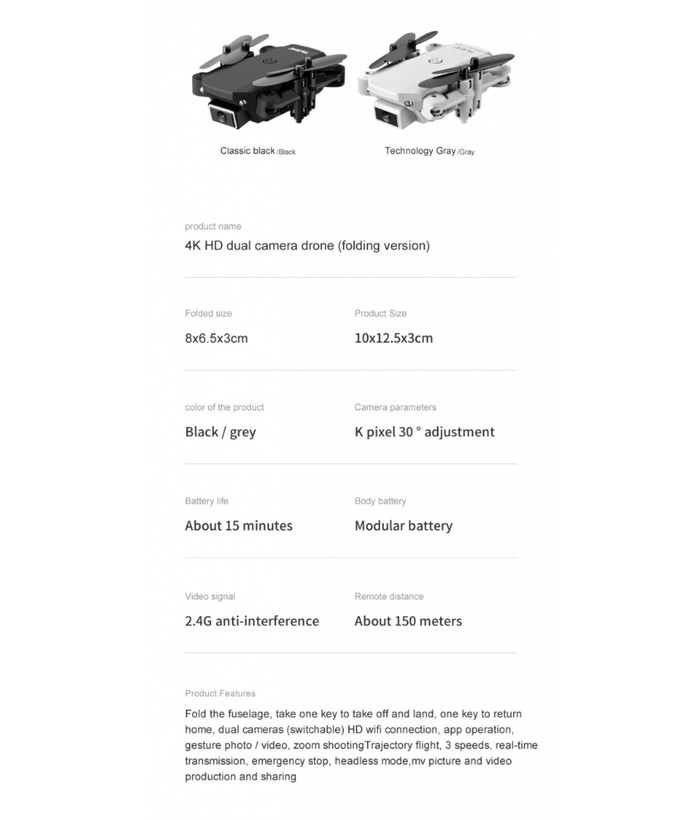 این کواد از جمله پرنده هایی است که قابلیت تا شوندگی دارد. ابعاد و اندازه این کواد در حالت باز ۱۰*۱۲.۵*۳ سانتی متر و در حالت بسته و تا شده ۸*۶.۵*۳ سانتی متر است. این کواد وزن زیادی ندارد و هدایت، نگهداری و حمل و نقل آن بسیار راحت صورت می گیرد. وزن و حجم این کواد، به شما نشان می دهد که با بقیه کوادکوپترها تفاوت های اساسی دارد.