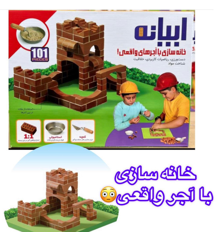 ✔️دو مرحله، مهارتآموزی ساخت بنا را گامبهگام به کودکان آموزش میدهد. ابتدا بدون استفاده از ملات، بنا با محاسبات ذهنی و عینی چیده میشود. بدین ترتیب مراحل ساخت، قبل از اجرای نهایی تجربه میشود سپس در مرحله دوم، چینش آجرها با بهکارگیری ملات همراه خواهد بود که پس از خشک شدن استحکام کافی را خواهد داشت. بناهای ساخته شده به راحتی در آب شسته و جدا میشود. بدین ترتیب با فراگیری ساخت نمونه بنا کودکان می توانند دست بکار شوند و بناهای خود را بسازند و لذت ببرند.