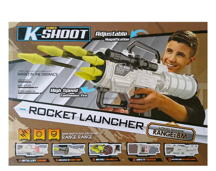 تفنگ اسباب بازی ار پی چی K-SHOOT آیتم M606 یک محصول جذاب است ؛ که برای کودکان در رده سنی +8 سال به بالا طراحی شده است . این محصول دارای 6 عدد تیر پلاستیکی است که در محفظه نگه دارنده تفنگ نگه داشته و در هنگام شلیک ، جای گذاری و هدف گیری میشود . این تفنگ طول 58 سانتی متر داشته و با دو عدد باتری قلمی کار میکند .