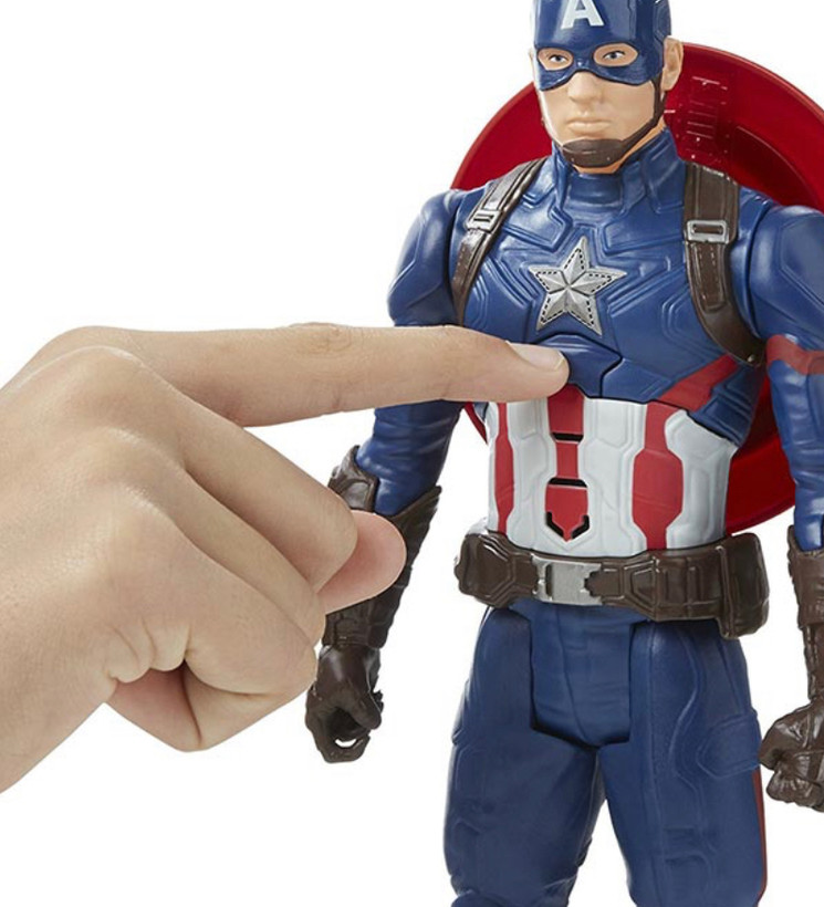 کاپیتان آمریکا سری HASBRO MARVEL دارای یک دکمه بر روی قفسه سینه خود است که با فشار دادن آن موزیک پخش می شود. این اکشن فیگور فوق العاده برای کودکان بالای ۴ سال طراحی شده و همانند شخصیت جذاب کاپیتان آمریکا طراحی شده است. سپر موجود در بسته بندی قابلیت نصب بر پشت فیگور و یا در دست او را دارا می باشد. این اکشن فیگور قابلیت حرکت اعضا دارد و کودک دلبند شما می تواند دست ها، پاها و سر آن را حرکت دهد. با انتخاب یک اکشن فیگور مناسب بازی های کودکان را جهت بدهید. اکشن فیگور کاپیتان آمریکا باعث هیجان و نشاط کودک می شود و در یادگیری مهارت های جدید به کودک کمک می کند.