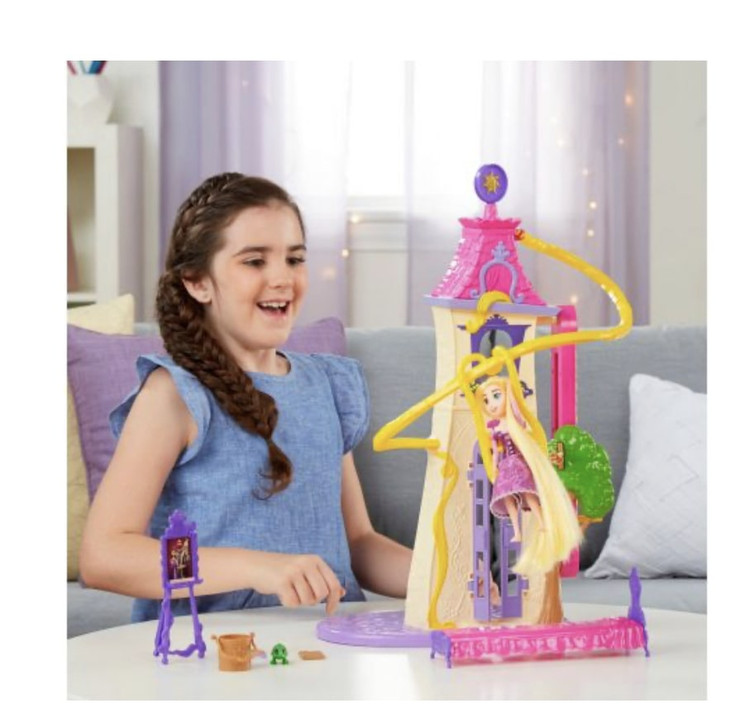 بچه ها میتونند در قصر چرخان راپانزل ماجراجویی کنند و با 8 وسیله جانبی که همراه این ست است مثل سه پایه، فانوس و تخت خواب راپانزل خیلی خوش بگذرونن. عروسک راپانزل در این ست موهای بلندی داره که بچه ها میتونند شونه و تزیین کنند.