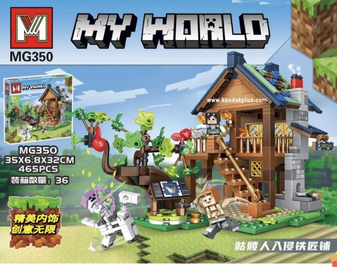 لگو ماینکرفت، شامل 465 تکه برای ساخت خانه چوبی است که یکی از بهترین هدیه ها برای کودکان طرفدار بازی ماینکرفت. این اسباب بازی لگو برای کودکان و نوجوانان 6 سال به بالا مناسب می باشد. این لگو از جنس پلاستیک با کیفیت است که به راحتی روی هم چفت میشوند.