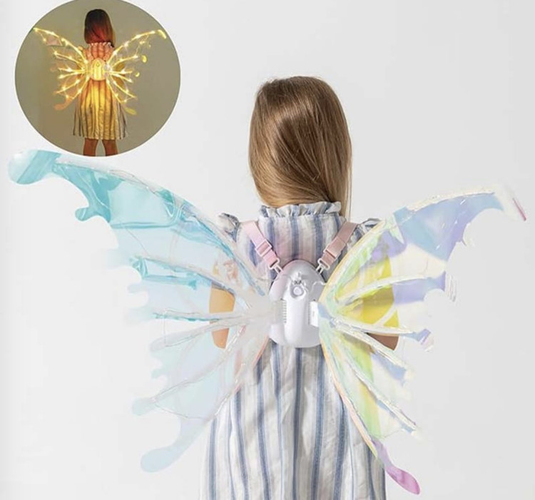 - بال پروانه برقی از پارچه رنگین کمانی ساخته شده است. دارای بندهای شانه ای قابل تنظیم است که نرم و راحت، بادوام اما سبک وزن هستند. سوئیچ را به مدت طولانی فشار دهید و بال های پری می توانند تکان بخورند. آنها لوازم آرایشی ضروری برای لباس های زیبا هستند.